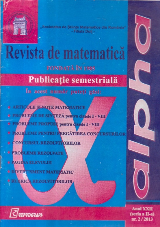Comandă online cartea "Revista de matematica Alpha, nr. 2/2013" la 6,20 lei scrisă de George Margineanu, tiparită la editura Reprograph face parte din colecția ALPHA în anul 2013. cu plata ramburs sau online cu cardul. Momentan titlul "Revista de matematica Alpha, nr. 2/2013" nu este disponibil însa vă puteți înscrie pentru a fi notificat în momenul reaprovizionarii.