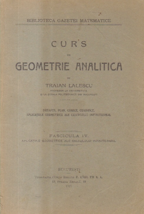 Fascicula IV. Aplicatiile geometrice ale calculului infinitezimal