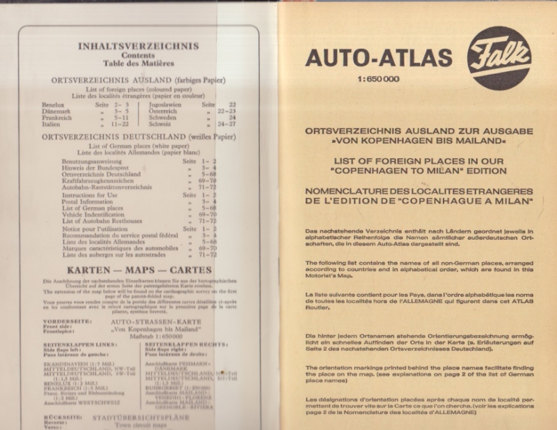 Comandă online Autoatlas von Kopenhagen bis Mailand 1:650000 (Falk plan) la 41,20 lei, tiparită la editura Hamburg în limba germana tare de anticariat (excelenta). Livrare din stoc cu plata ramburs sau online cu cardul.