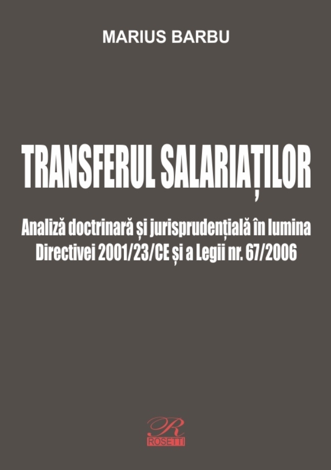 Comandă online Transferul salariaţilor : analiză doctrinară şi jurisprudenţială în lumina directivei 2001/23/CE şi a Legii 67/2006 la 84,57 lei isbn 9786060251750 scrisă de Marius Barbu, tiparită la editura Rosetti în anul 2025. Cartea poate fi livrată în circa 20 zile cu plata ramburs sau online cu cardul.