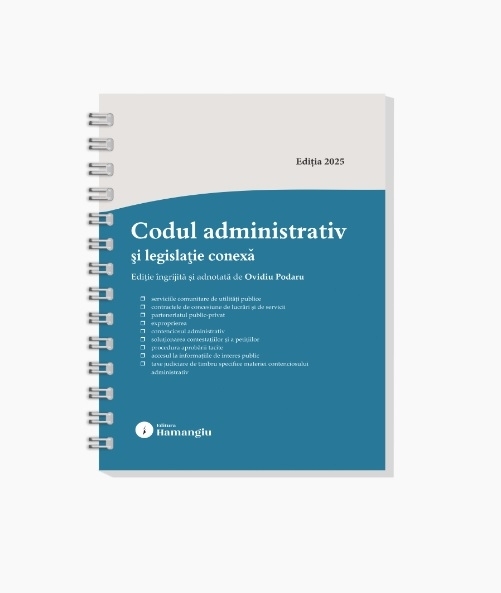 Comandă online cartea "Codul administrativ şi legislaţie conexă" la 121,00 lei isbn 9786062728342 scrisă de Ovidiu Podaru, tiparită la editura Hamangiu în anul 2025. Cartea poate fi livrată în circa 2 zile cu plata ramburs sau online cu cardul.