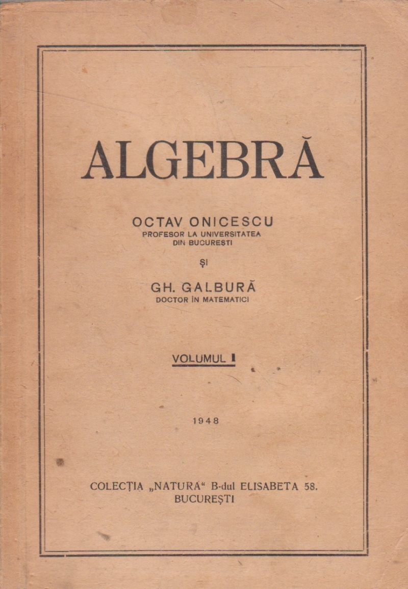 Comandă online Algebra, Volumul I (Onicescu, Galbura, Editie 1948) la 51,80 lei scrisă de Octav Onicescu , Gh. Galbura în anul 1948 cu un număr de 354 pagini de anticariat (buna). Livrare din stoc cu plata ramburs sau online cu cardul.