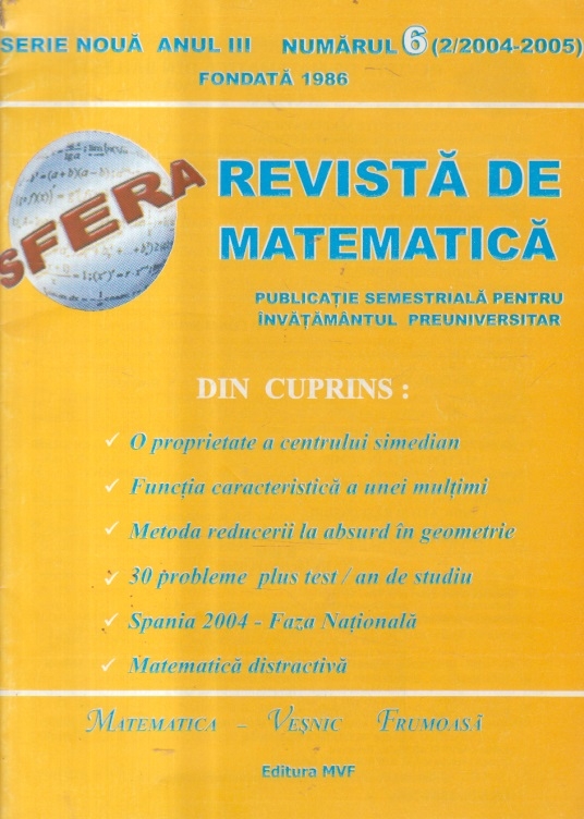 Comandă online cartea "Sfera - Revista de matematica din Bailesti, Nr. 2 / 2004-2005" la 9,90 lei Ion Patrascu, tiparită la editura MVF face parte din colecția Revista Sfera în anul 2005. cu plata ramburs sau online cu cardul. Momentan titlul "Sfera - Revista de matematica din Bailesti, Nr. 2 / 2004-2005" nu este disponibil însa vă puteți înscrie pentru a fi notificat în momenul reaprovizionarii.