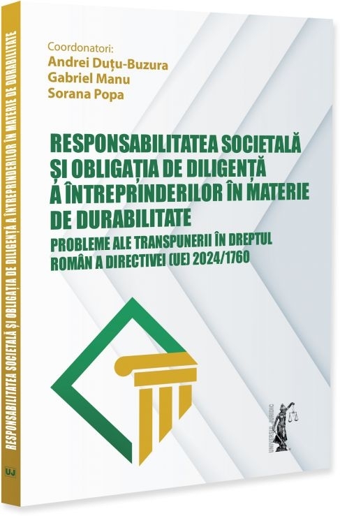 Comandă online cartea "Responsabilitatea societală şi obligaţia de diligenţă a întreprinderilor în materie de durabilitate : probleme ale transpunerii în dreptul român a directivei (UE) 2024/1760" la 70,59 lei isbn 9786063918711 scrisă de coord.: Andrei Duţu-Buzura , Gabriel Manu , Sorana POPA , Andrei Dutu-Buzura, tiparită la editura Universul Juridic în anul 2025. Cartea poate fi livrată în circa 2 zile cu plata ramburs sau online cu cardul.