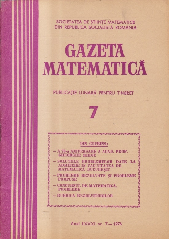 Comandă online cartea "Gazeta Matematica, Nr. 7/1976" la 6,20 lei scrisă de Societatea de Stiinte Matematice din Romania, tiparită la editura Gazeta Matematica face parte din colecția Gazeta Matematica în anul 1976. Livrare din stoc cu plata ramburs sau online cu cardul.