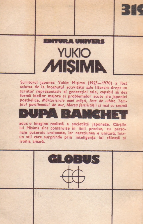 Comandă online cartea "Dupa banchet" la 15,90 lei scrisă de Yukio Mishima, tiparită la editura Univers face parte din colecția Globus în anul 1979. cu plata ramburs sau online cu cardul. Momentan titlul "Dupa banchet" nu este disponibil însa vă puteți înscrie pentru a fi notificat în momenul reaprovizionarii.