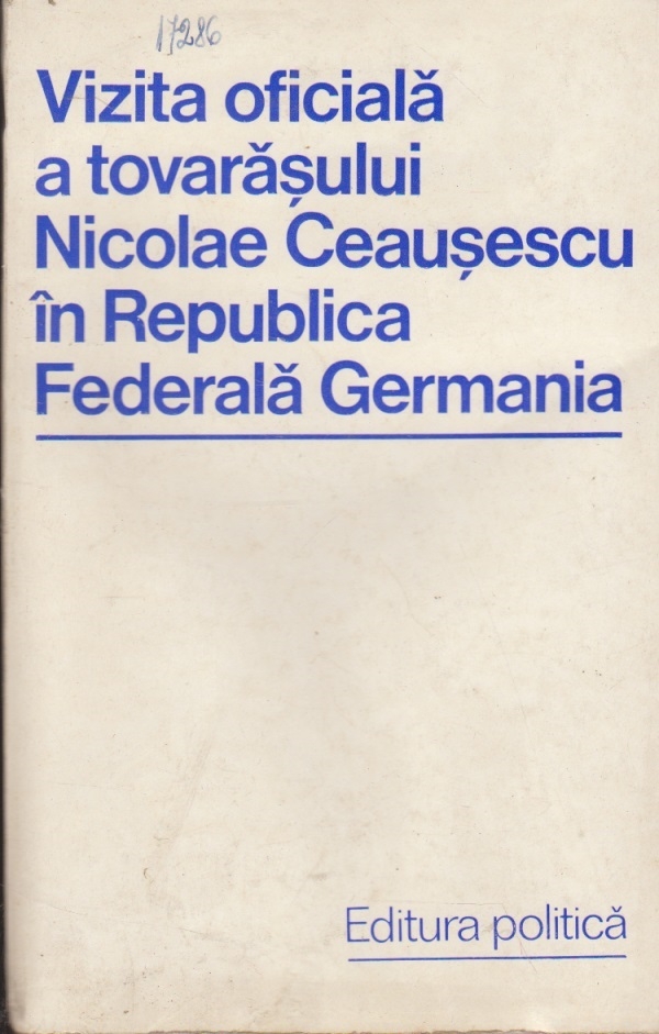 Comandă online Vizita oficiala a tovarasului Nicolae Ceausescu in RFG (26 - 30 iunie 1973) la 15,90 lei, tiparită la editura Politica în anul 1974 cu un număr de 196 pagini categorie Literatura comunista / proletcultista, Beletristică și critică. cu plata ramburs sau online cu cardul. Momentan titlul Vizita oficiala a tovarasului Nicolae Ceausescu in RFG (26 - 30 iunie 1973) nu este disponibil însa vă puteți înscrie pentru a fi notificat în momenul reaprovizionarii.