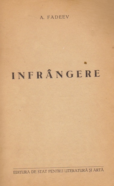 Comandă online cartea "Infrangere" la 2,10 lei scrisă de A. Fadeev, tiparită la editura Editura de Stat pentru Literatura si Arta cu un număr de 187 pagini categorie Beletristică și critică, Literatura rusa, Literatura universala. cu plata ramburs sau online cu cardul. Momentan titlul "Infrangere" nu este disponibil însa vă puteți înscrie pentru a fi notificat în momenul reaprovizionarii.