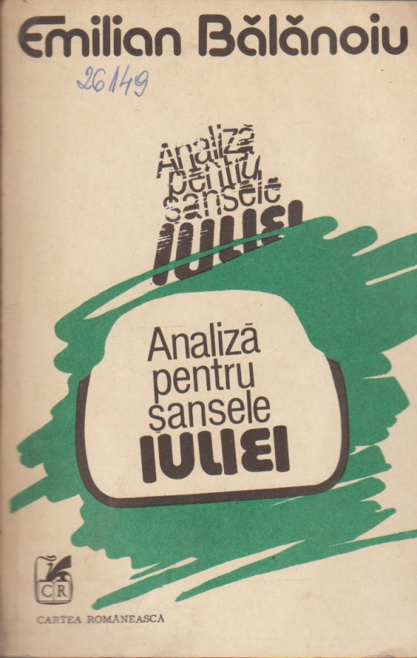 Comandă online cartea "Analiza pentru sansele Iuliei - Povestiri" la 6,20 lei scrisă de Emilian Balanoiu, tiparită la editura Cartea Romaneasca în anul 1985 cu un număr de 277 pagini. Livrare din stoc cu plata ramburs sau online cu cardul.