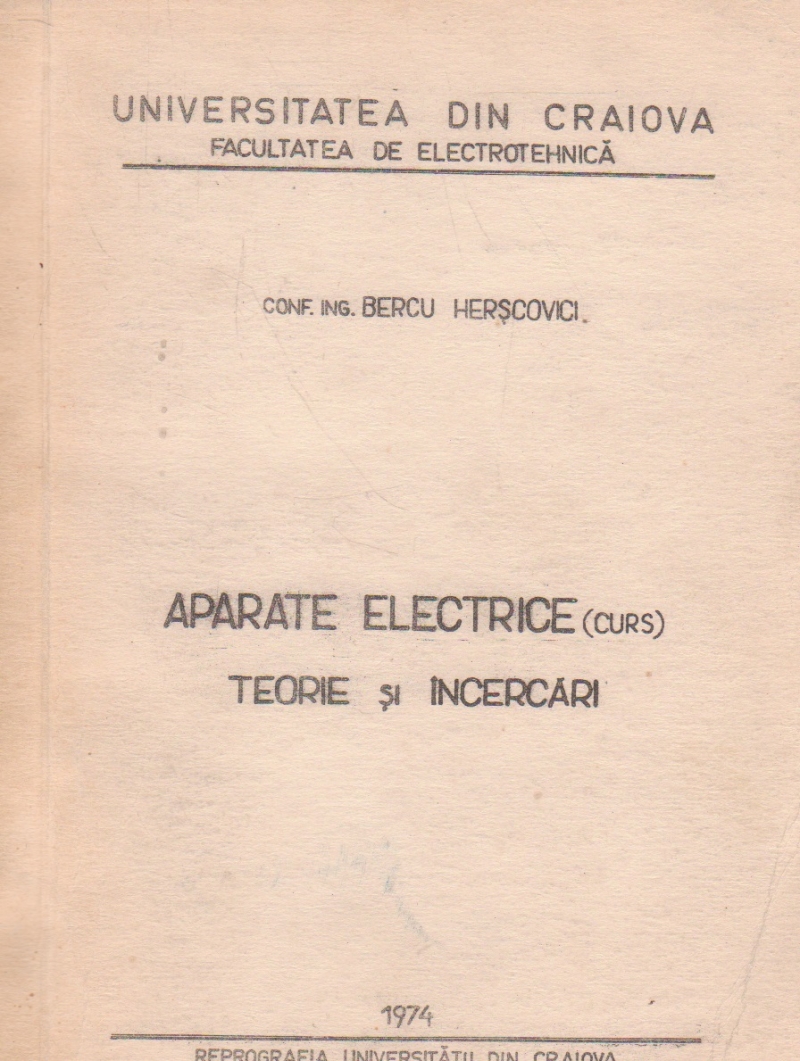 Comandă online cartea "Aparate electrice (Curs) - Teorie si incercari." la 26,40 lei scrisă de Bercu Herscovici, tiparită la editura Reprografia Universitatii din Craiova face parte din colecția Facultatea de Electrotehnica în anul 1974. cu plata ramburs sau online cu cardul. Momentan titlul "Aparate electrice (Curs) - Teorie si incercari." nu este disponibil însa vă puteți înscrie pentru a fi notificat în momenul reaprovizionarii.