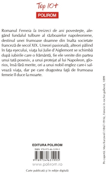 Traducere din limba franceza de H. Gramescu Romanul Femeia la treizeci de ani povesteste, alegind fundalul tulbure al razboaielor napoleoniene, destinul unei frumoase doamne din inalta societate franceza de secol XIX. Uneori pasionala, alteori palind in fata esecului, viata lui Julie d’Aiglemont se schimba dupa iubirile care o framinta, fie ele venite din partea unui tata posesiv, a unui protejat al lui Napoleon, glorios, insa fara merite, ori a unui nobil englez care-i salveaza viata, dar pe care dragostea fata de frumoasa femeie il duce la moarte.