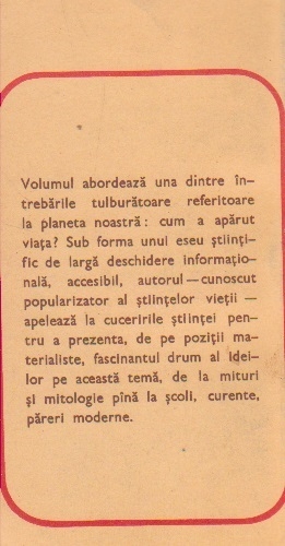 Volumul abordeaza una dintre intrebarile tulburatoare referitoare la planeta noastra: cum a aparut viata?