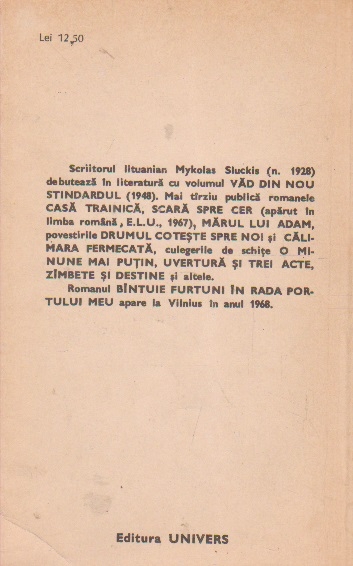 Comandă online Bintuie furtuni in rada portului meu la 2,95 lei scrisă de Mykolas Sluckis Igor Block, tiparită la editura Univers în anul 1975. Livrare din stoc cu plata ramburs sau online cu cardul.