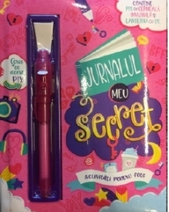 Fetele se vor distra de minune completând acest jurnal secret plin de activități interesante. Dacă scrii cu pixul special, notițele nu vor putea fi văzute decât pe întuneric, folosind lanterna cu UV .