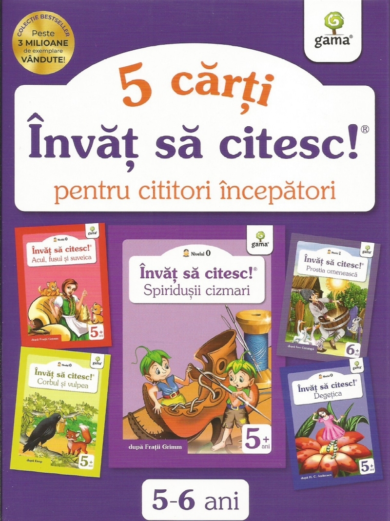 Pachetul Învăț să citesc! - 5 cărți interactive pentru cititori începători este destinat copiilor care acum învață să lege literele în cuvinte și cuvintele în propoziții. În interior veți găsi 4 cărți de nivelul 0 cu abțibilduri – în care textul este prezentat în două variante: cu majuscule și imagini ajutătoare, dar și cu litere mari și mici de tipar – și o carte de nivelul următor, pentru a exersa citirea.