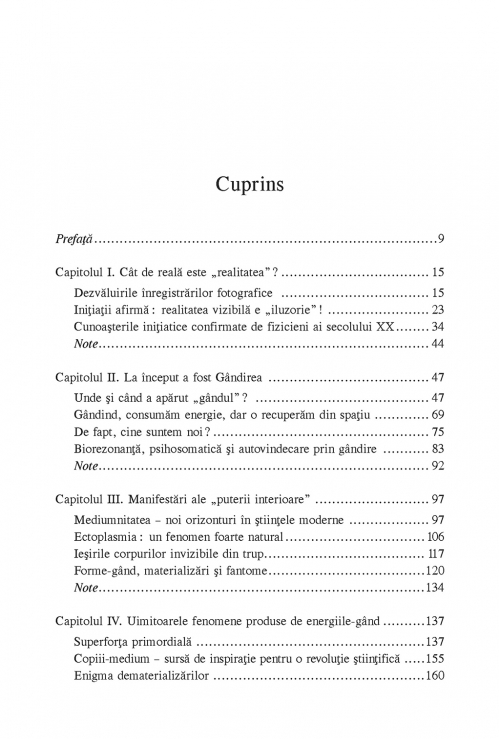 Se spune că întregul univers a fost creat prin puterea gîndului și că din cele mai vechi timpuri ființe avansate spiritual, care știau să stăpînească această forță, au venit pe Pămînt pentru a ajuta omenirea să evolueze. În jurul nostru, totul funcționează pe bază de energie, iar în lipsa acesteia nu ar exista progres. Energia generată de gîndire este utilizată în toate domeniile și poate fi activată de fiecare dintre noi. Ilustrîndu-și expunerile cu numeroase exemple și fotografii, Florin Gheorghiță ne ajută prin această carte să facem un prim pas spre descoperirea uimitoarelor fenomene produse de energiile-gînd.