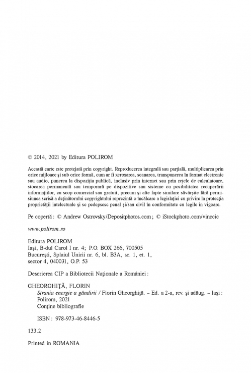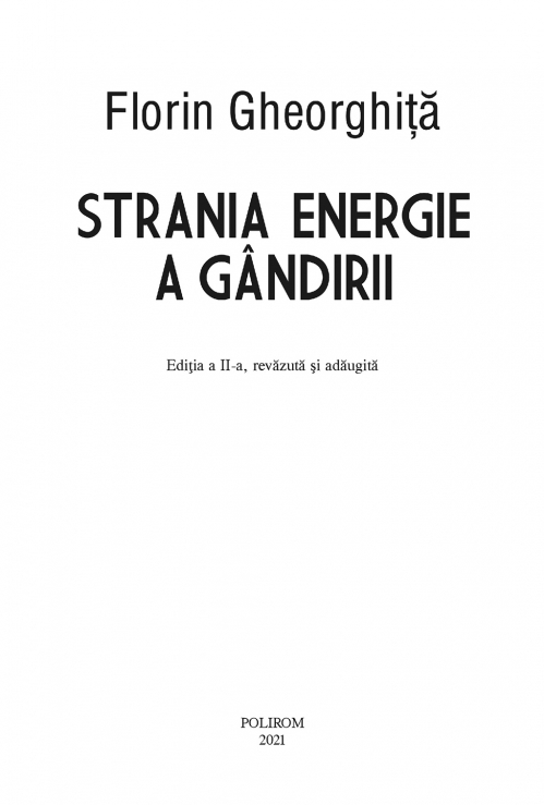 Comandă online cartea "Strania energie a gândirii (ediţia a II-a, revăzută şi adăugită)" la 31,70 lei isbn 9789734684465 scrisă de Florin Gheorghita, tiparită la editura Polirom face parte din colecția HEXAGON -> La limita cunoasterii. Cartea poate fi livrată în circa 5 zile cu plata ramburs sau online cu cardul.