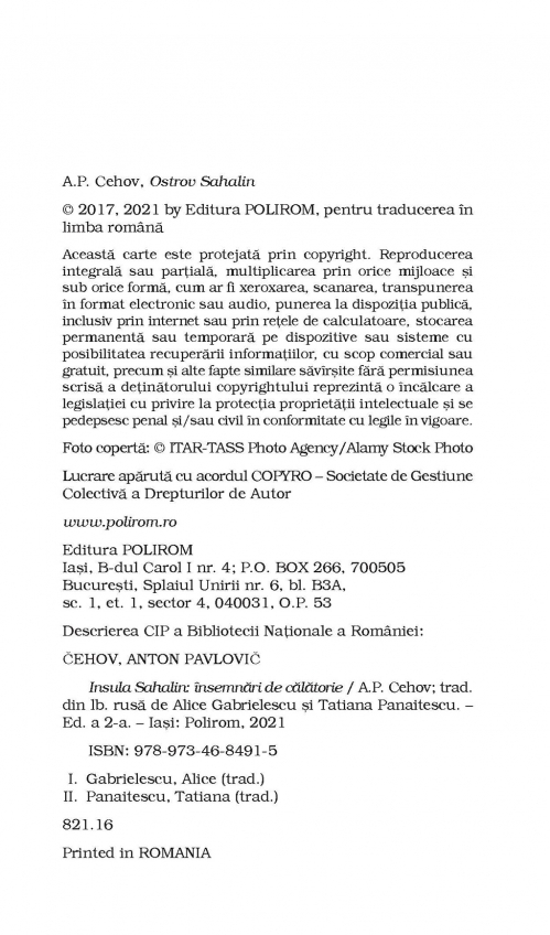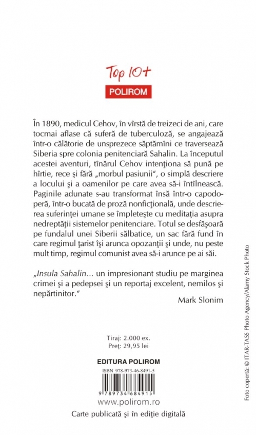 Comandă online cartea "Insula Sahalin (ediție de buzunar)" la 31,70 lei isbn 9789734684915 scrisă de A.P. Cehov, tiparită la editura Polirom face parte din colecția Top 10+. Cartea poate fi livrată în circa 5 zile cu plata ramburs sau online cu cardul.