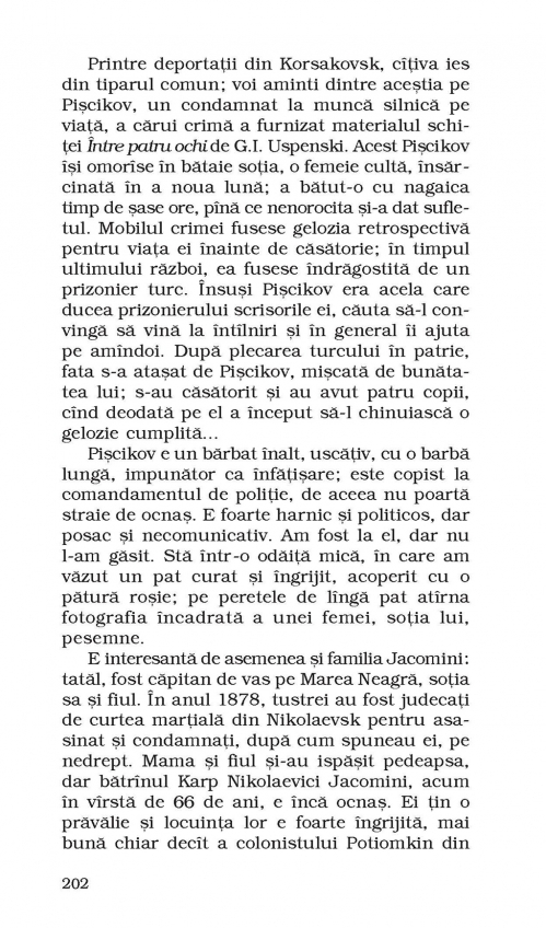 să-i întîlnească. Paginile adunate s-au transformat însă într-o capodoperă, într-o bucată de proză nonficţională, unde descrierea suferinţei umane se împleteşte cu meditaţia asupra nedreptăţii sistemelor penitenciare. Totul se desfăşoară pe fundalul unei Siberii sălbatice, un sac fără fund în care regimul ţarist îşi arunca opozanţii şi unde, nu peste mult timp, regimul comunist avea să-i arunce pe ai săi.