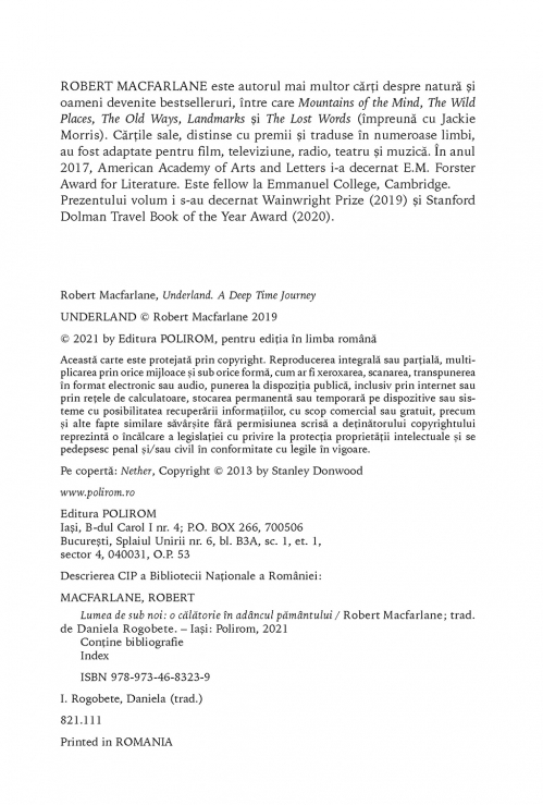Comandă online Lumea de sub noi. O călătorie în adâncul pământului la 42,20 lei isbn 9789734683239 scrisă de Robert Macfarlane, tiparită la editura Polirom face parte din colecția HEXAGON -> Cartea de calatorie. Cartea poate fi livrată în circa 5 zile cu plata ramburs sau online cu cardul.
