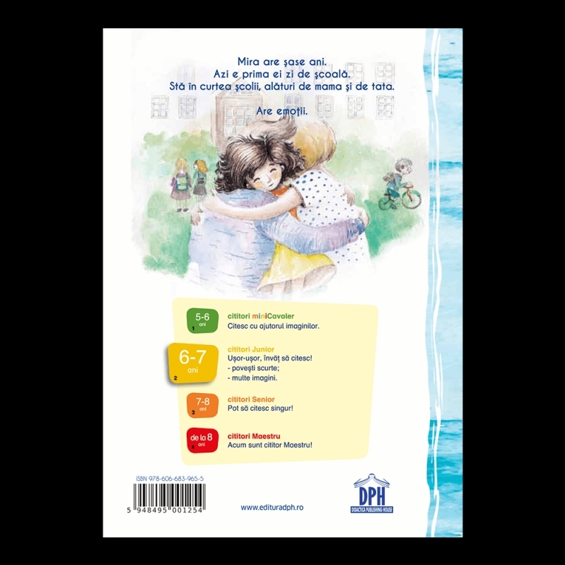 O carte plină de emoție, scrisă special pentru copiii care învață să citească singuri. Conține cuvinte uzuale, așezate în propoziții simple, bine structurate, care descriu situații în care copiii se vor regăsi ușor și care stârnesc curiozitatea lor nativă. În plus, Prima zi de școală a Mirei le oferă ocazia de a afla cu ce emoții se confruntă și părinții lor odată cu începerea școlii.
