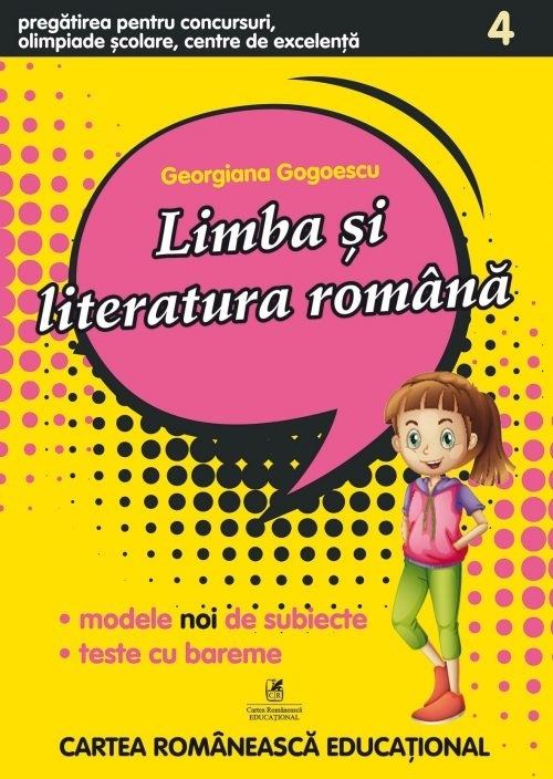 Comandă online cartea "Pregatirea pentru concursuri, olimpiade scolare, centre de excelenta. Limba si literatura romana pentru clasa a IV-a" la 41,00 lei isbn 9786069088135 scrisă de Georgiana Gogoescu, tiparită la editura Cartea Romaneasca Educational în anul 2019. Cartea poate fi livrată în circa 2 zile cu plata ramburs sau online cu cardul.