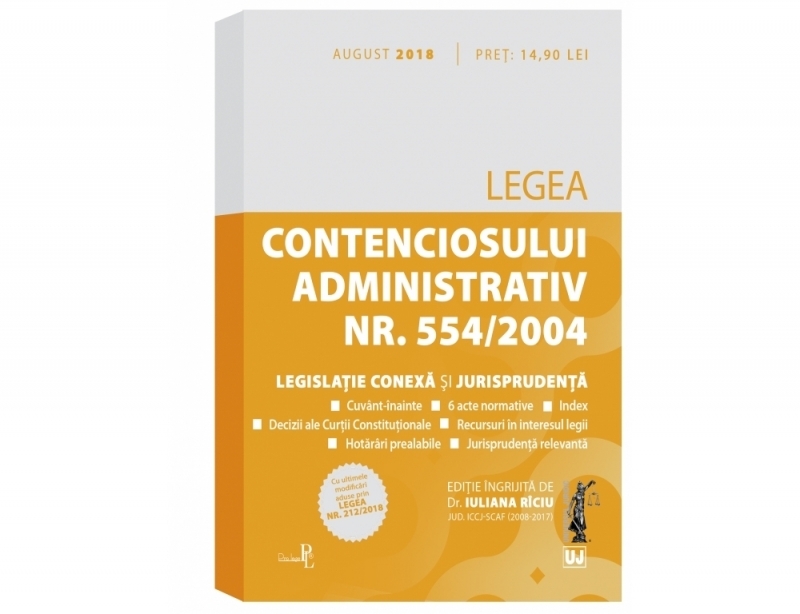 Legea Contenciosului Administrativ Nr. 554/2004. Legislatie conexa si jurisprudenta. August 2018