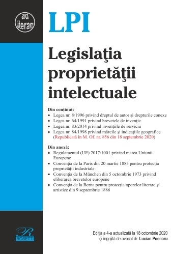 Comandă online Legislatia proprietatii intelectuale. Editia a 4-a actualizata la 18 octombrie 2020 la 51,80 lei isbn 9786060250463 scrisă de Lucian Poenaru, tiparită la editura Rosetti în anul 2020. Cartea poate fi livrată în circa 2 zile cu plata ramburs sau online cu cardul.
