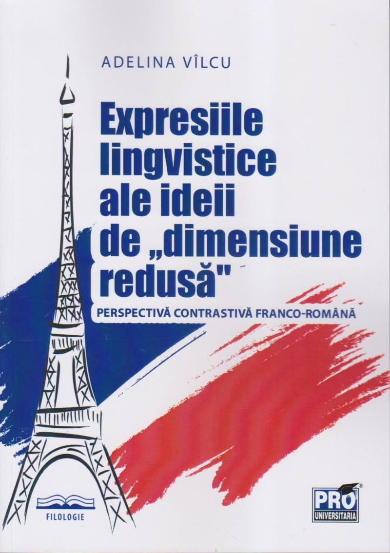 Comandă online Expresiile lingvistice ale ideii de "dimensiune redusă" : perspectivă contrastivă franco-română la 51,80 lei isbn 9786062616441 scrisă de Adelina Vilcu, tiparită la editura Pro Universitaria în anul 2022. Cartea poate fi livrată în circa 2 zile cu plata ramburs sau online cu cardul.