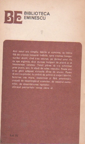 Comandă online Oras patriarhal la 2,95 lei scrisă de Cezar Petrescu, tiparită la editura Eminescu face parte din colecția Biblioteca Eminescu în anul 1982. Livrare din stoc cu plata ramburs sau online cu cardul.