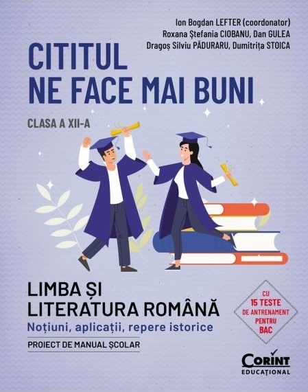 Comandă online Cititul ne face mai buni : clasa a XII-a,limba şi literatura romană,noţiuni, aplicaţii, repere istorice la 92,92 lei isbn 9786060889816 scrisă de Ion Bogdan Lefter (coord.) , Roxana Stefania Ciobanu , Dan Gulea , ... , Ion Bogdan Lefter , Dumitrita Stoica , Dragos Silviu Paduraru, tiparită la editura Corint în anul 2025. Cartea poate fi livrată în circa 2 zile cu plata ramburs sau online cu cardul.