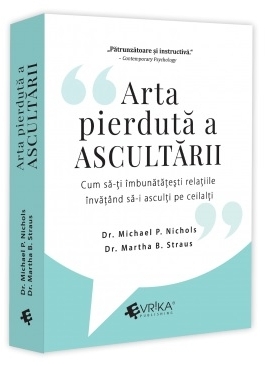 Comandă online cartea "Arta pierdută a ascultării : cum să-ţi îmbunătăţeşti relaţiile învăţând să-i asculţi pe ceilalţi" la 74,90 lei isbn 9786306536375 scrisă de dr. Michael P. Nichols , dr. Martha B. Straus , Michael P. Nichols , Martha B. Straus , Gabriel Tudor, tiparită la editura Evrika Publishing în anul 2025. Cartea poate fi livrată în circa 2 zile cu plata ramburs sau online cu cardul.