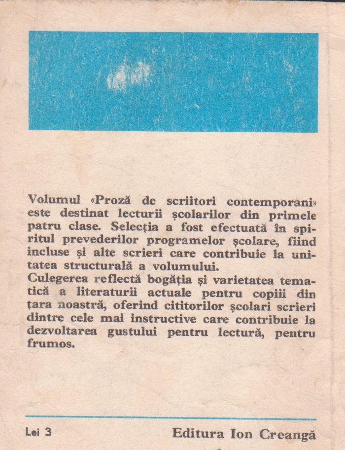 Comandă online Proza de scriitori contemporani la 4,10 lei, tiparită la editura Ion Creanga face parte din colecția Biblioteca Scolarului în anul 1978 cu un număr de 101 pagini. Livrare din stoc cu plata ramburs sau online cu cardul.