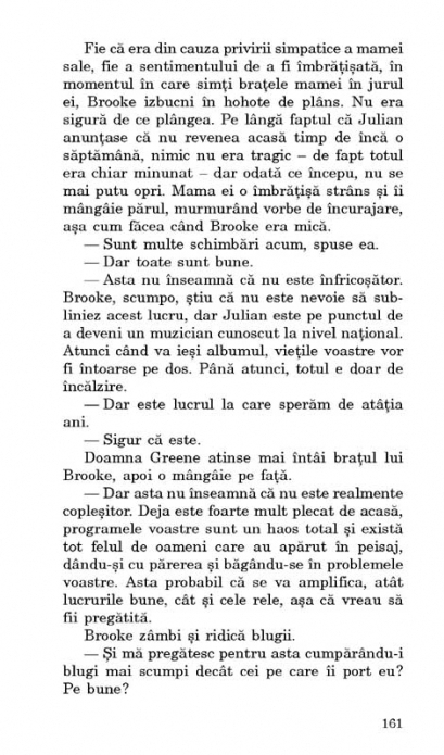 In cel mai recent roman al sau, Lauren Weisberger abordeaza cu subtilitate si umor teme de actualitate precum pretul succesului in societatea contemporana si efectele dezastruoase ale faimei asupra relatiilor de cuplu, descriind peripetiile amuzante prin care trece o pereche proaspat casatorita, a carei fericire incepe sa se clatine sub presiunea celebritatii capatate peste noapte. Brooke si sotul ei duc o viata vesela si multumita in New York, insa lucrurile iau o intorsatura dramatica in momentul in care cariera de muzician a lui Julian incepe sa ia avint – cei doi se vad tot mai rar din cauza plecarilor lui in turnee, se trezesc hartuiti fara incetare de paparazzi si ajung sa descopere ca intimitatea incintatoare a relatiei lor a disparut. Captivant si tulburator, romanul lui Lauren Weisberger