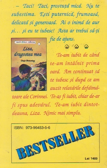 Comandă online Liza, dragostea mea la 6,20 lei scrisă de Dixie Browning, tiparită la editura Carmel face parte din colecția Sandra Brown collection în anul 1994. cu plata ramburs sau online cu cardul. Momentan titlul Liza, dragostea mea nu este disponibil însa vă puteți înscrie pentru a fi notificat în momenul reaprovizionarii.