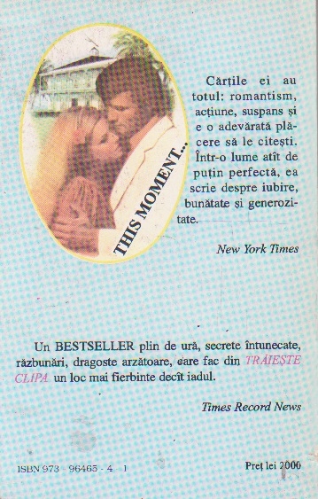 Comandă online cartea "Traieste clipa!" la 6,20 lei scrisă de Sandra Brown, tiparită la editura Miron cu un număr de 183 pagini categorie Carti de dragoste, Beletristică și critică. cu plata ramburs sau online cu cardul. Momentan titlul "Traieste clipa!" nu este disponibil însa vă puteți înscrie pentru a fi notificat în momenul reaprovizionarii.
