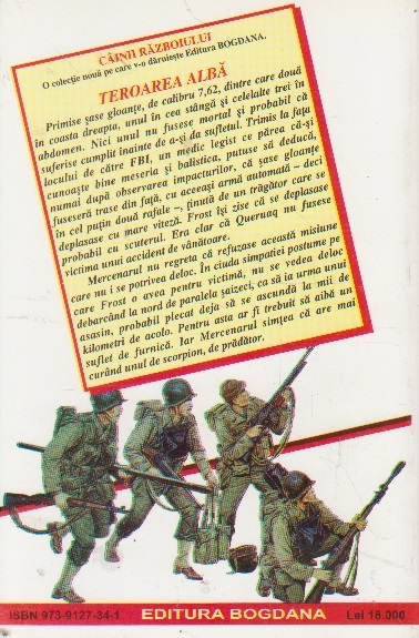 Comandă online cartea "Teroarea alba" la 6,20 lei scrisă de Jo Dexter, tiparită la editura Bogdana face parte din colecția Cainii razboiului în anul 2001. cu plata ramburs sau online cu cardul. Momentan titlul "Teroarea alba" nu este disponibil însa vă puteți înscrie pentru a fi notificat în momenul reaprovizionarii.