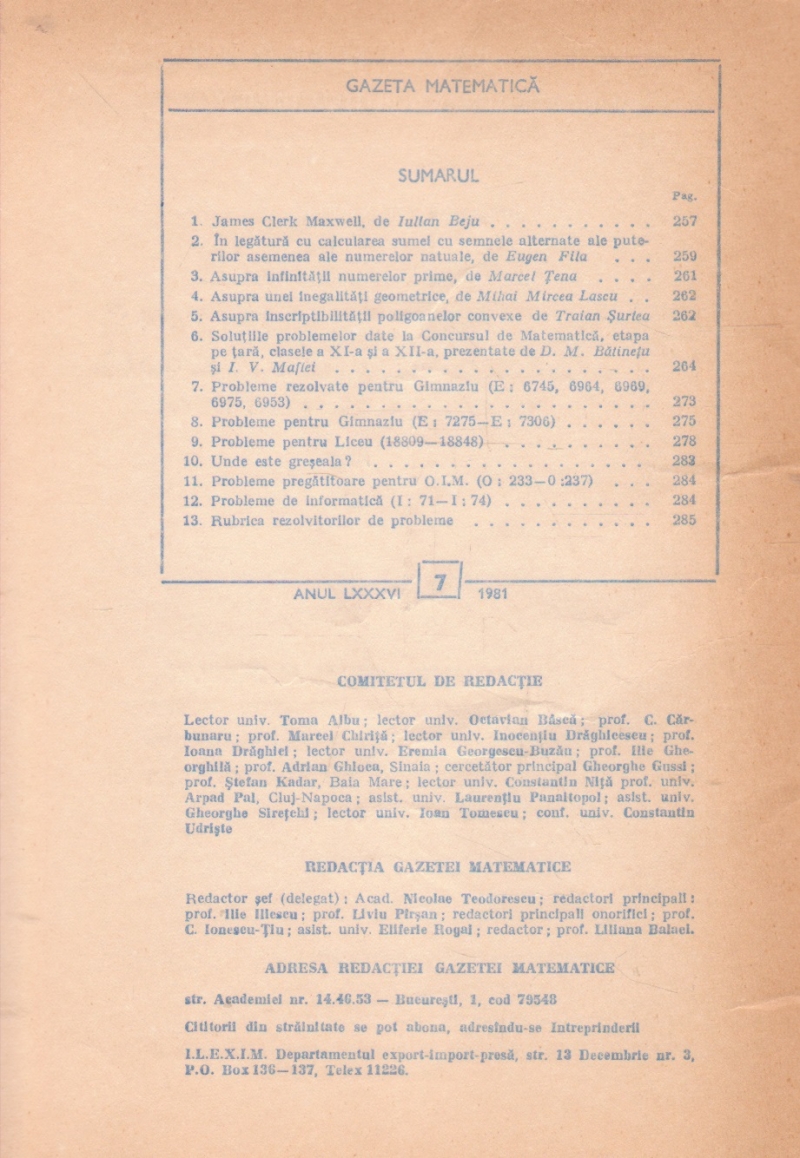 Gazeta Matematica, 6 numere (Septembrie 1967, Ianuarie-Aprilie si Iunie 1968)