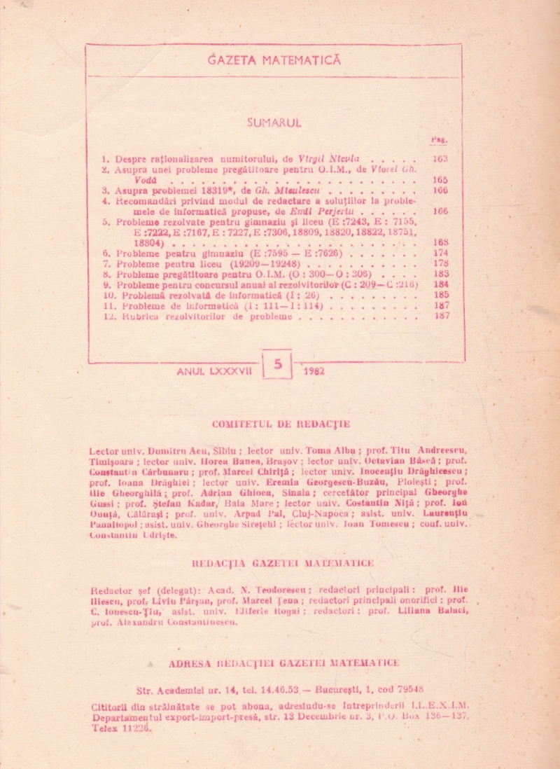 Gazeta Matematica, 6 numere (Septembrie 1967, Ianuarie-Aprilie si Iunie 1968)