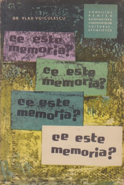 Comandă online cartea "Ce este memoria?" la 6,20 lei scrisă de Vlad Voiculescu, tiparită la editura Stiintifica în anul 1963 cu un număr de 47 pagini. cu plata ramburs sau online cu cardul. Momentan titlul "Ce este memoria?" nu este disponibil însa vă puteți înscrie pentru a fi notificat în momenul reaprovizionarii.