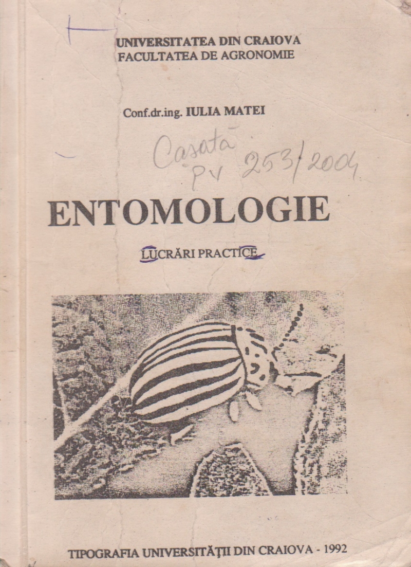 Comandă online cartea "Entomologie (Lucrari practice)" la 20,10 lei scrisă de Iulia Matei, tiparită la editura Reprografia Universitatii din Craiova face parte din colecția Facultatea de Agronomie în anul 1992. cu plata ramburs sau online cu cardul. Momentan titlul "Entomologie (Lucrari practice)" nu este disponibil însa vă puteți înscrie pentru a fi notificat în momenul reaprovizionarii.