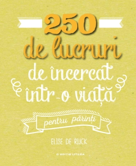 Comandă online 250 de lucruri de încercat într-o viață - pentru părinți la 34,76 lei isbn 9786063337253 scrisă de Elise De Rijck, tiparită la editura Litera face parte din colecția 250 de lucruri. cu plata ramburs sau online cu cardul. Momentan titlul 250 de lucruri de încercat într-o viață - pentru părinți nu este disponibil însa vă puteți înscrie pentru a fi notificat în momenul reaprovizionarii.