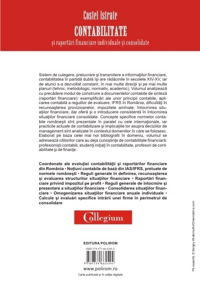 Comandă online cartea "Contabilitate şi raportări financiare individuale şi consolidate" la 46,42 lei isbn 9789734662494 scrisă de Costel Istrate, tiparită la editura Polirom face parte din colecția COLLEGIUM -> Stiinte economice. cu plata ramburs sau online cu cardul. Momentan titlul "Contabilitate şi raportări financiare individuale şi consolidate" nu este disponibil însa vă puteți înscrie pentru a fi notificat în momenul reaprovizionarii.