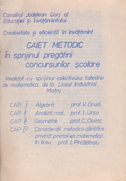 Comandă online cartea "Caiet Metodic in Sprijinul Pregatirii Concursurilor Scolare" la 26,40 lei scrisă de V. Drula, tiparită la editura Targu Jiu în anul 1985 categorie Matematica, Manuale scolare, Învățamânt - Educație. cu plata ramburs sau online cu cardul. Momentan titlul "Caiet Metodic in Sprijinul Pregatirii Concursurilor Scolare" nu este disponibil însa vă puteți înscrie pentru a fi notificat în momenul reaprovizionarii.