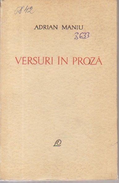 Comandă online cartea "Versuri In Proza" la 15,90 lei scrisă de Adrian Maniu, tiparită la editura Pentru Literatura în anul 1965 cu un număr de 371 pagini. cu plata ramburs sau online cu cardul. Momentan titlul "Versuri In Proza" nu este disponibil însa vă puteți înscrie pentru a fi notificat în momenul reaprovizionarii.