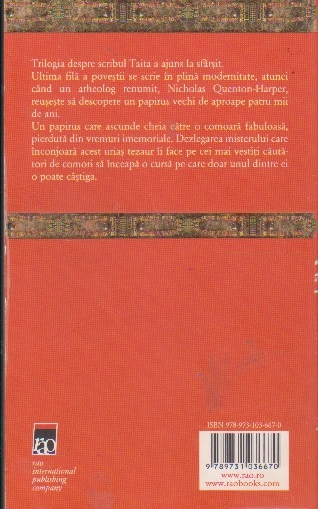 Trilogia despre scribul Taita a ajuns la sfarsit. Ultima fila a povestii se scrie in plina modernitate, atunci cand un vestit arheolog, Nicholas Quenton-Harper, reuseste sa descopere un papirus vechi de aproape patru mii de ani.