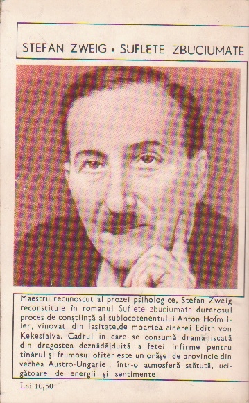 Maestru recunoscut al prozei psihologice, Stefan Zweig reconstituie in romanul Suflete zbuciumatedurerosul proces de constiinta al sublocotenentului Anton Hofmiller, vinovat, din lasitate de moartea tinerei Edith von Kekesvala.Cadrul incare se consuma drama iscata din dragostea deznadajduita a fetei infirme pentru tanarul si frumosul ofiter este un orasel de provincie din vechea Austro-Ungarie, intr-o atmosfera statuta, ucigatoare de energii si sentimente.