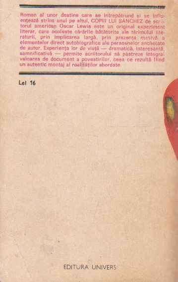 Comandă online cartea "Copiii lui Sanchez" la 13,60 lei scrisă de Oscar Lewis Gherasim Tic, tiparită la editura Univers în anul 1978. cu plata ramburs sau online cu cardul. Momentan titlul "Copiii lui Sanchez" nu este disponibil însa vă puteți înscrie pentru a fi notificat în momenul reaprovizionarii.