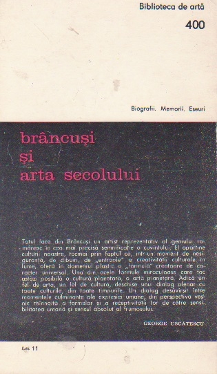 Comandă online Brancusi si arta secolului la 6,20 lei scrisă de George Uscatescu, tiparită la editura Meridiane în anul 1985 cu un număr de 115 pagini. cu plata ramburs sau online cu cardul. Momentan titlul Brancusi si arta secolului nu este disponibil însa vă puteți înscrie pentru a fi notificat în momenul reaprovizionarii.